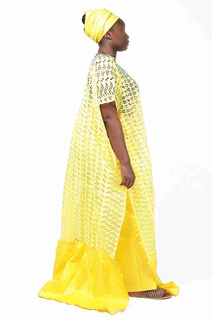 Overview 2-Piece Yellow Senegalese Boubou with Matching Scarf