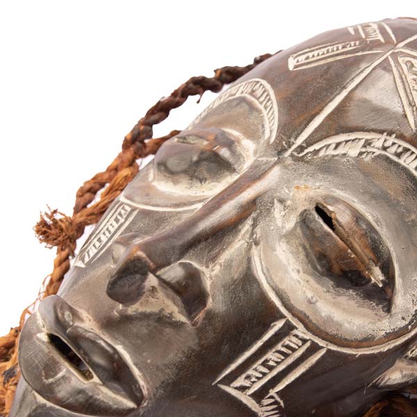 The African Chokwe Mask with Raids is crafted from premium-quality wood and adorned with intricate braided details.