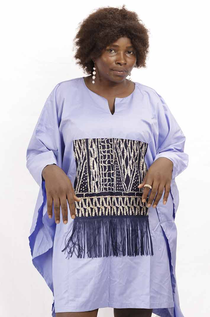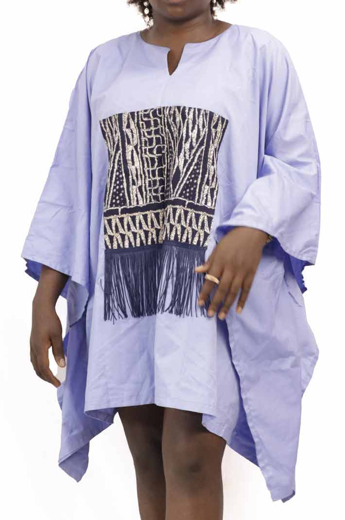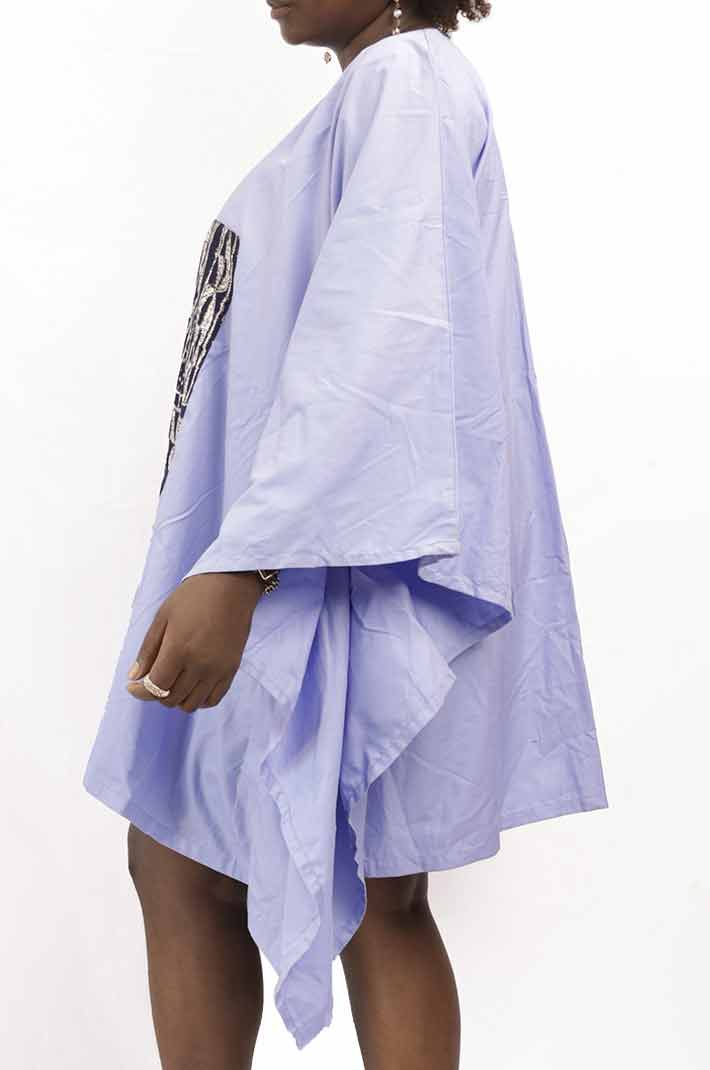 Make a bold fashion statement with the African Mini Blue Kimono Dress, a stunning blend of modern design and African heritage.