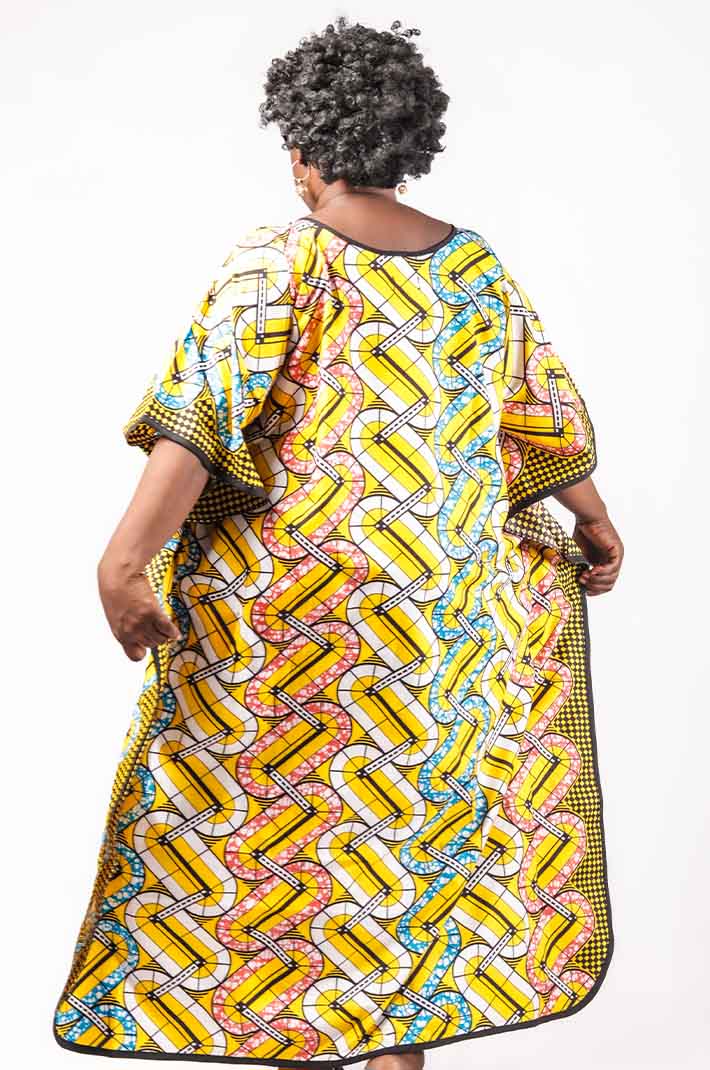 9 reviews for Ankara Boubou with Black Embroidery on Neck | Women Ankara Boubou