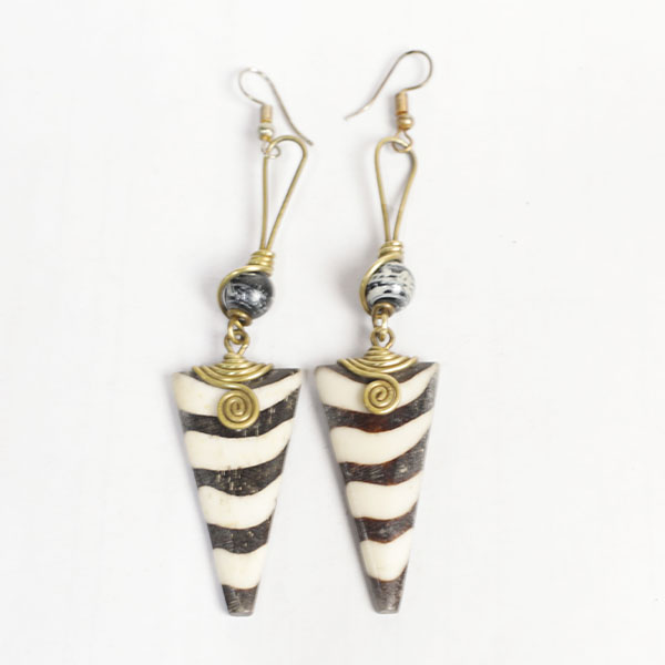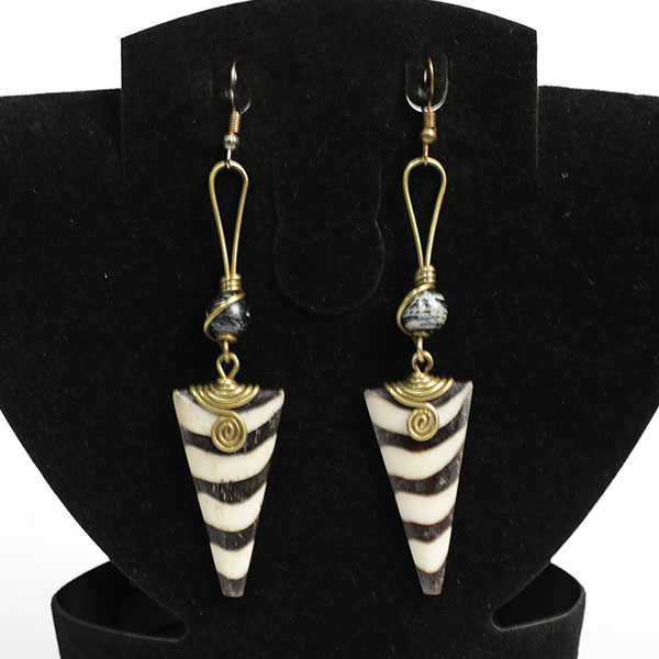 Step up your accessory game with these Black and White Ox Horn Triangle Earrings.