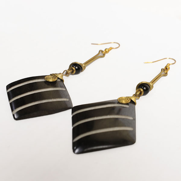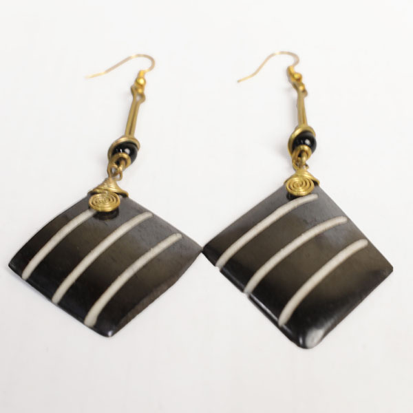 Handcrafted from natural ox horn, these earrings feature a striking diamond shape that blends traditional African craftsmanship with modern design.