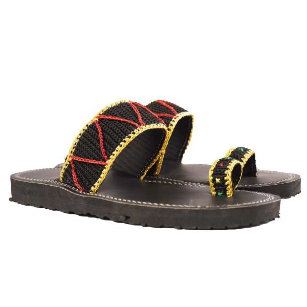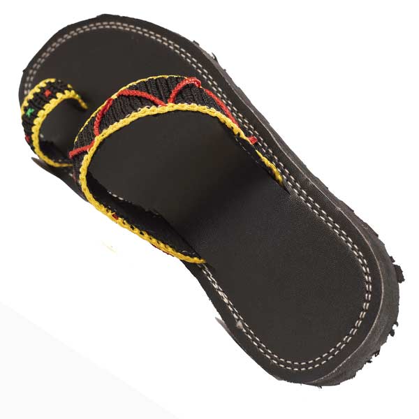 - Black Handmade Leather Sandal with Red and Yellow Twine