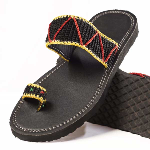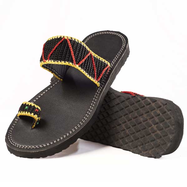 The Black Handmade Leather Sandal with Red and Yellow Twine is your go-to for effortless style and ease!
