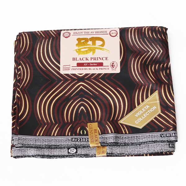 The Black Prince Ankara Fabric with Semicircle Stripe for Sale makes every outfit you sew stand out with its semicircle stripe prints curving across the black base.
