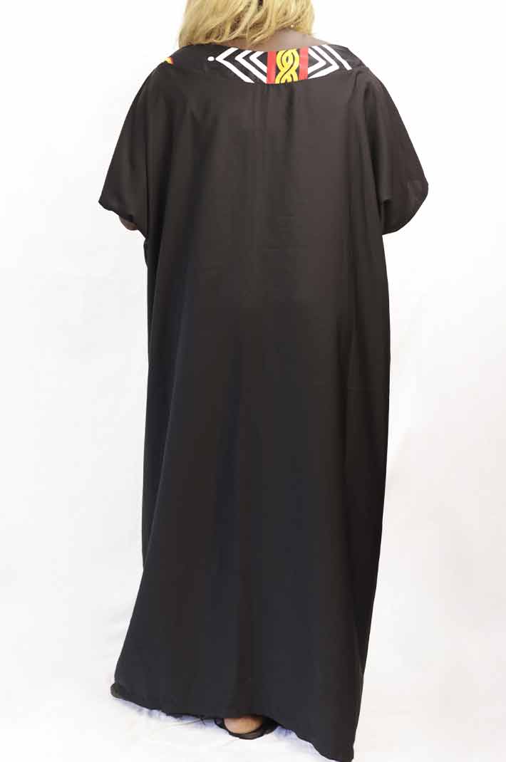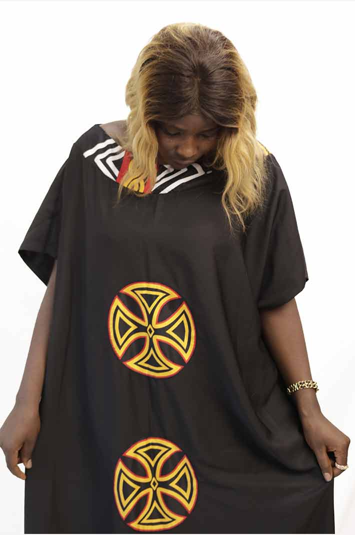 The Black Women Boubou with Toghu Patterns is available exclusively at BaobabMart.