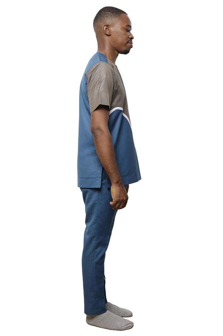 - Blue and Grey Dashiki Tracksuit for Men