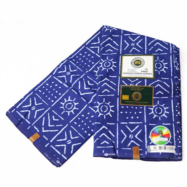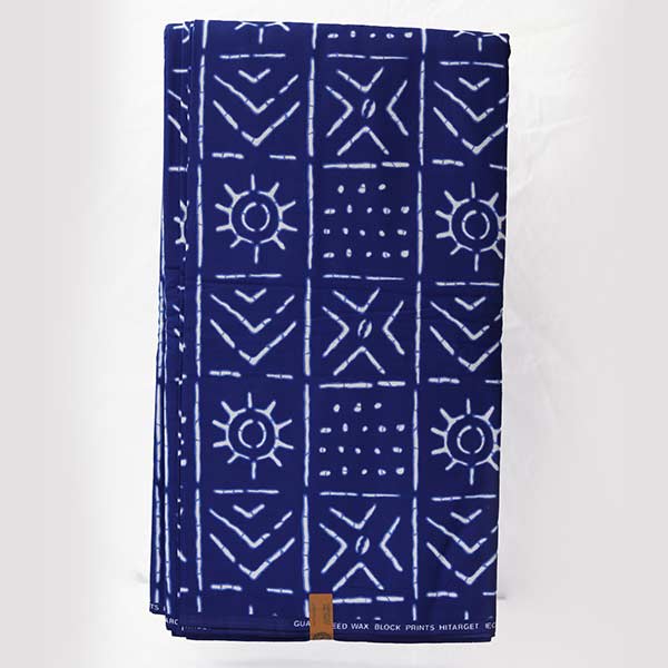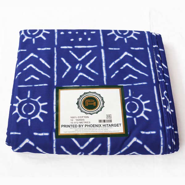 • Vibrant blue fabric with white ethnic motifs