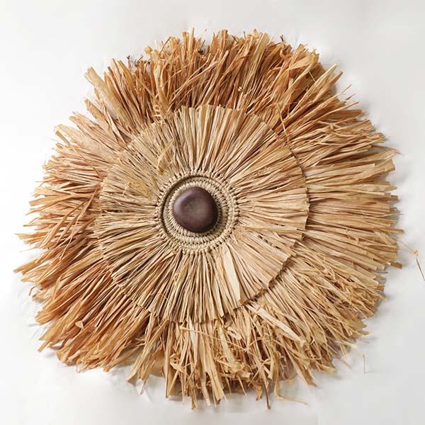 Enhance your living space with the natural beauty of our Raffia Round Wall Decor, available at Baobabmart.