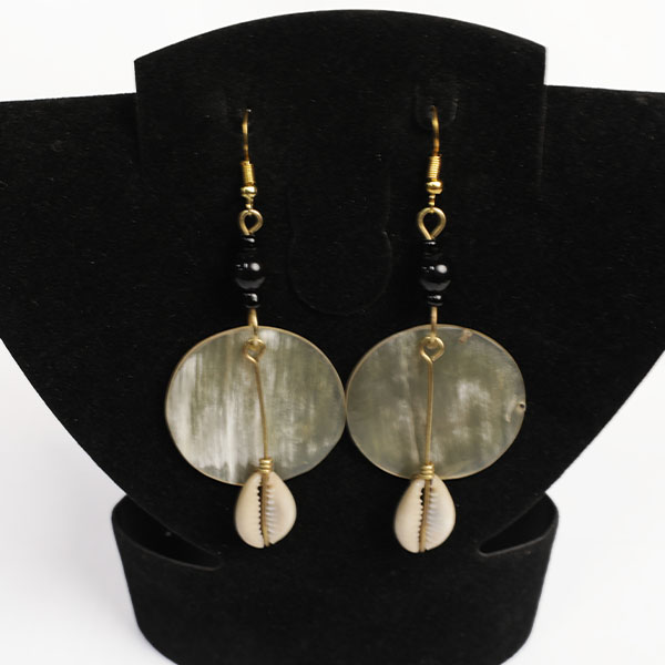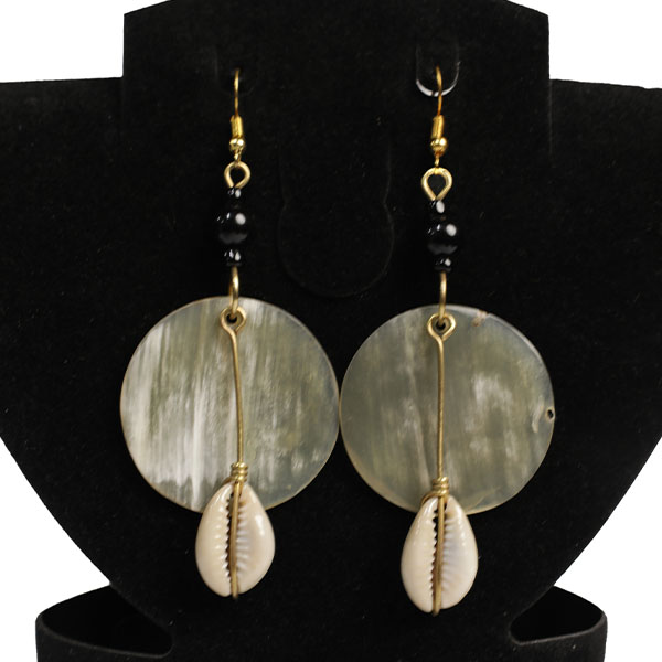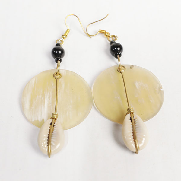 The Circular Ox Horn Earrings with Cowrie Pendant bring a touch of natural African elegance to your jewelry set.