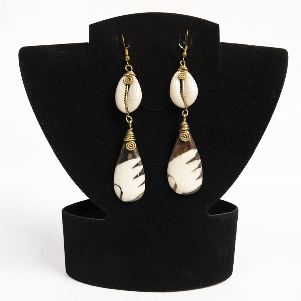 Elevate your style with the Cowrie and Drop-like Cow Horn Earrings, a beautiful blend of traditional African craftsmanship and modern elegance.