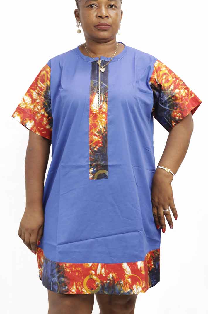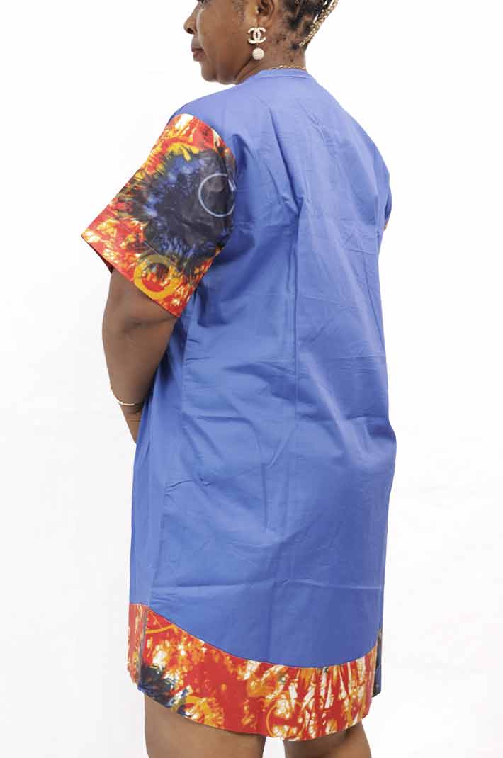 Blue Two-tone Women's Tunic Dress with a right-side pocket, available at Baobabmart.Blue Two-tone Women's Tunic Dress with a right-side pocket, available at Baobabmart.
