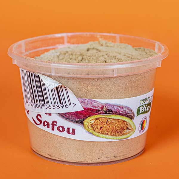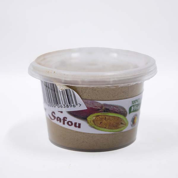 Organic safu plum seed powder is a naturally prepared African food ingredient made from dried African plum seeds that are carefully milled into a fine powder.