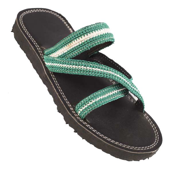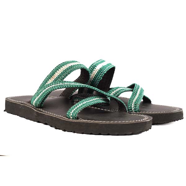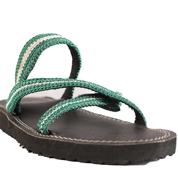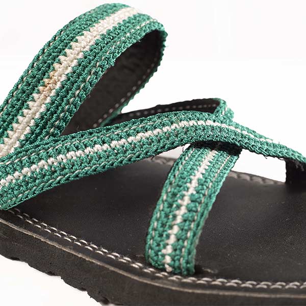 • “Female Handmade Leather Sandal with Green and White Twine at Baobabmart”