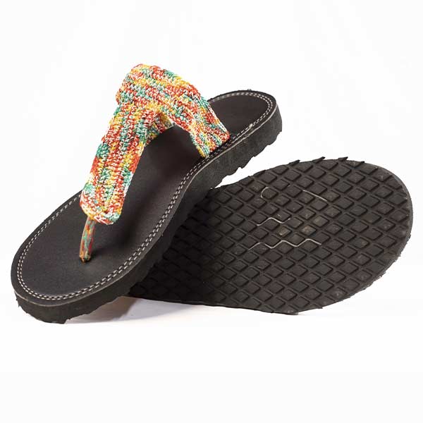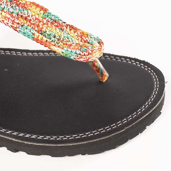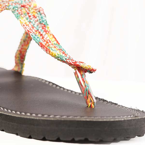 Female Handmade Leather Sandal with Multicolored Twine