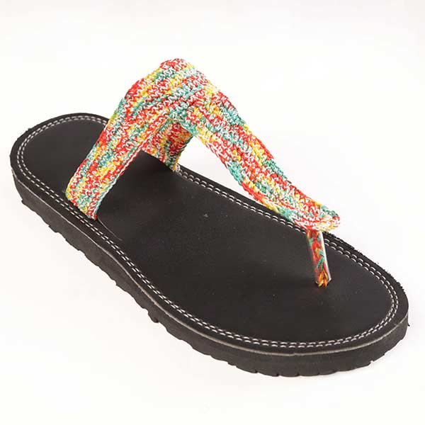 The Female Handmade Leather Sandal with Multicolored Twine feels like a warm hug for your feet, with leather that molds to you and twine that pops with color.