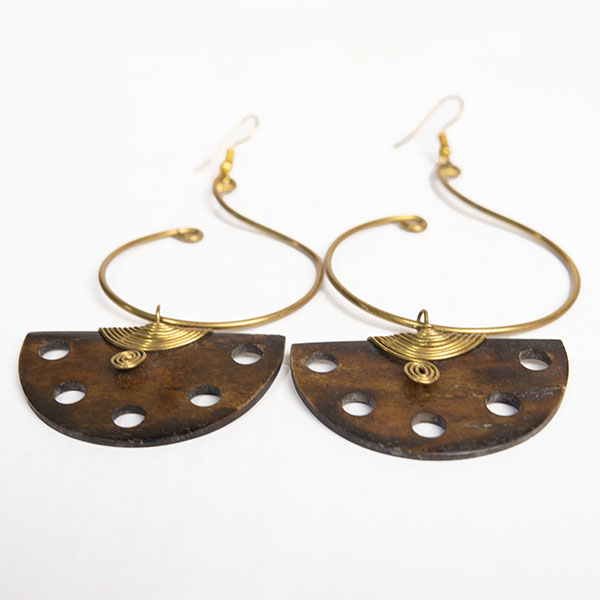 Overview Handmade Cleopatra Vintage Earrings Carved from Ox Horn Decorated with Bronze by Miss Swan