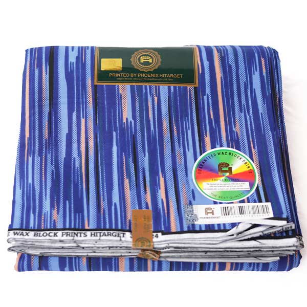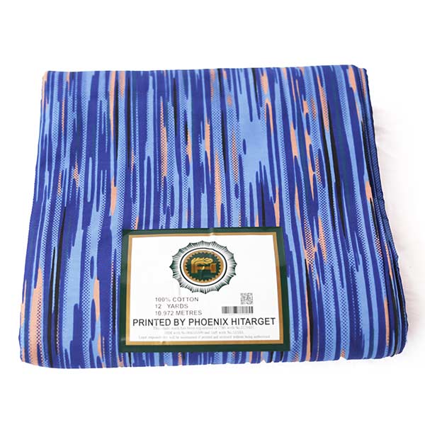 The Hitarget Blue Fabric with Black and Blush Vertical Prints makes every outfit you sew pop with its black and blush vertical prints running boldly on the blue base.
