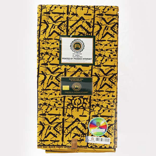 Overview Hitarget Mustard Yellow Fabric with Black Ethnic Motifs