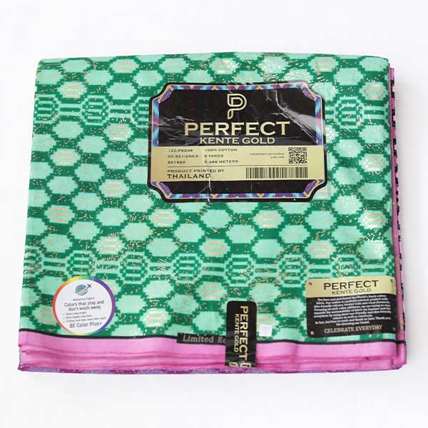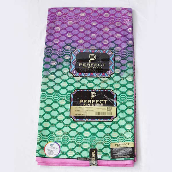 You’re excited about the Kente Gold Wax Fabric in Green Pink and Purple bringing rich, stylish looks that impress your friends every time!