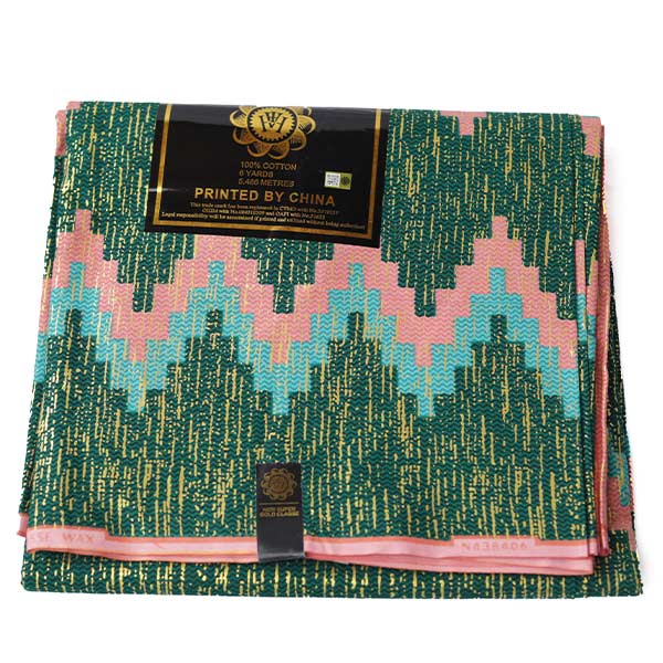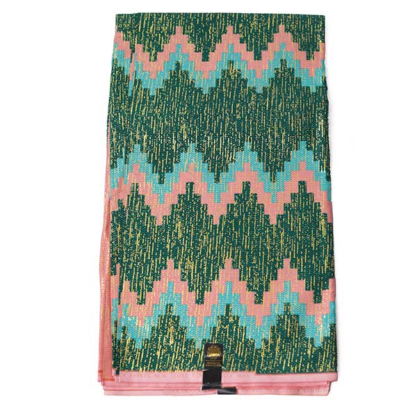 You’re excited about the Light Pink and Wood Green Kente Gold Wax Fabric bringing fresh, stylish looks that impress your friends every time!