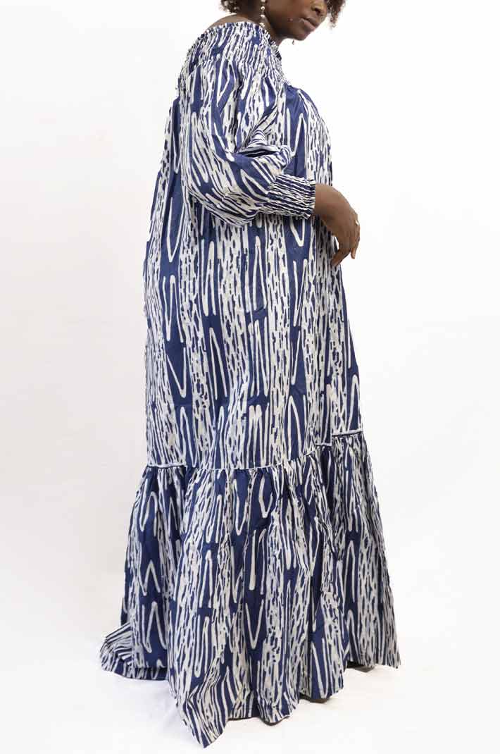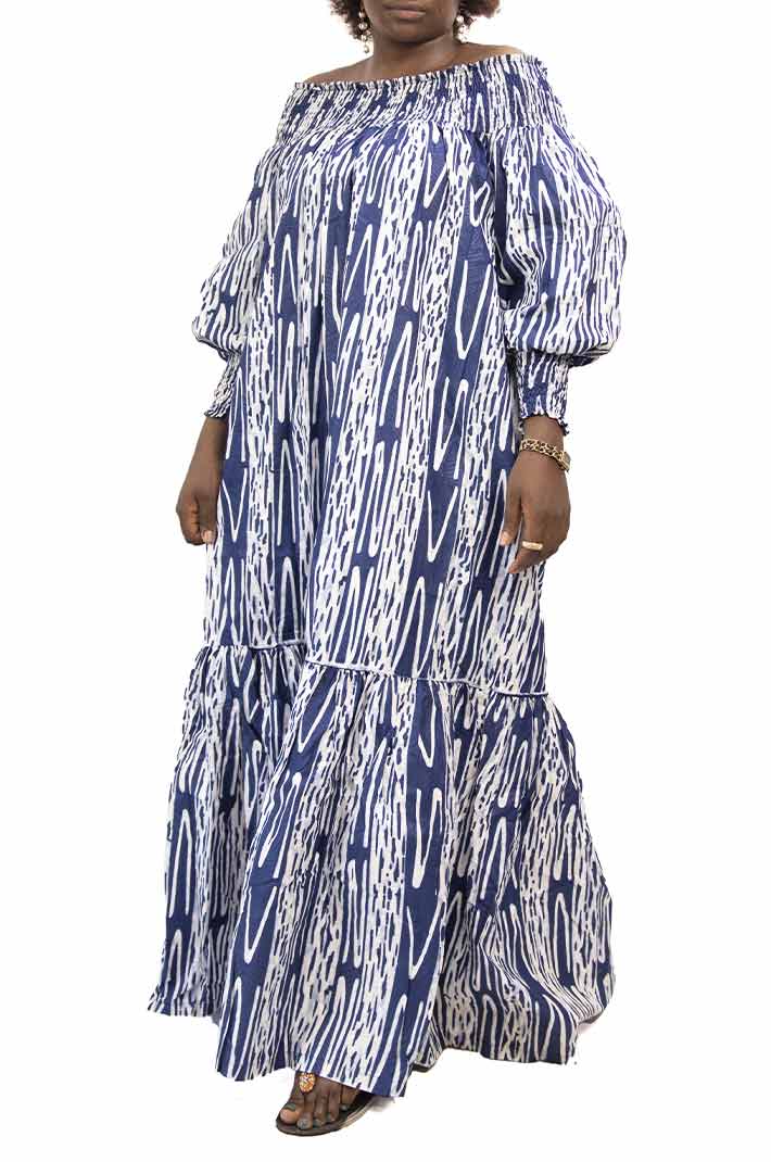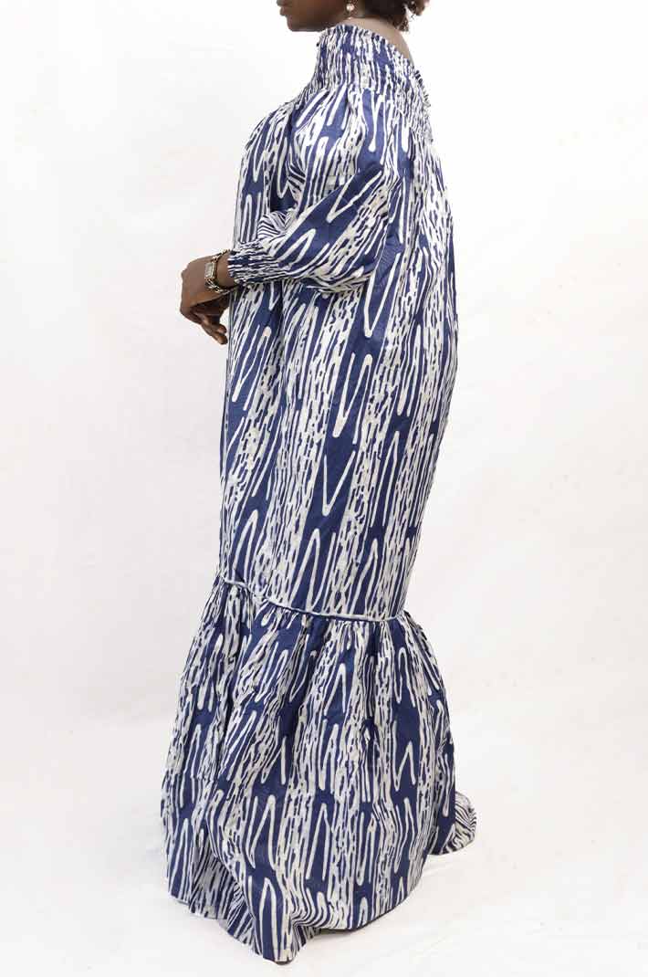 How to Style the Long Blue African Kaba with Puff Sleeves: