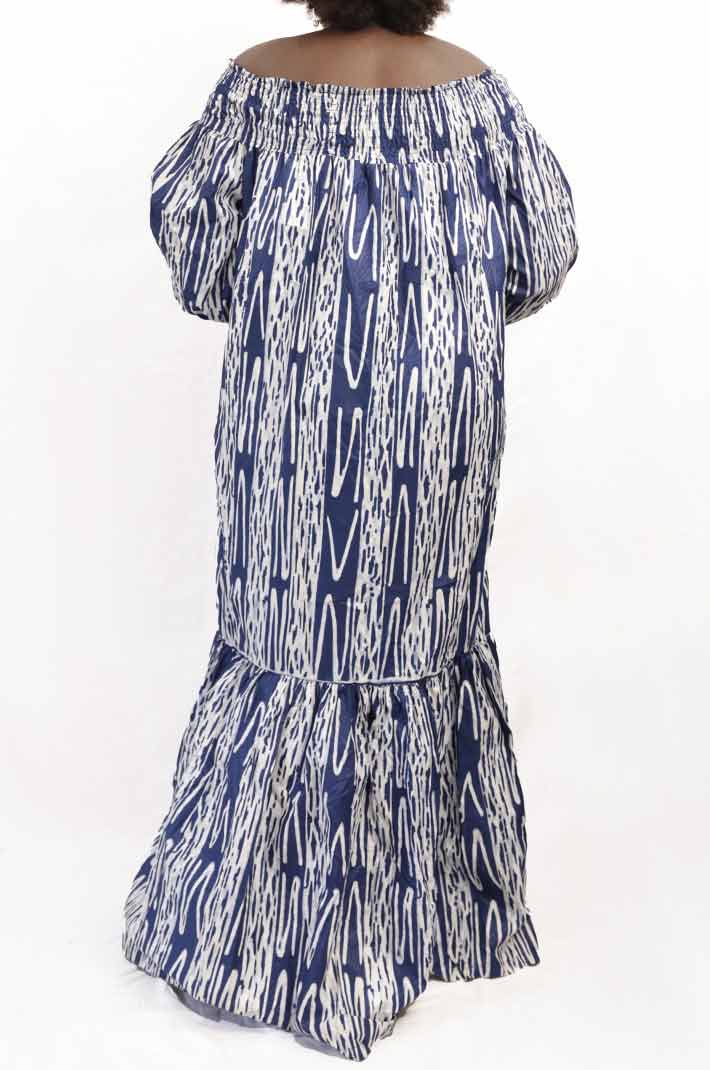 - Long Blue African Kaba with Puff Sleeves