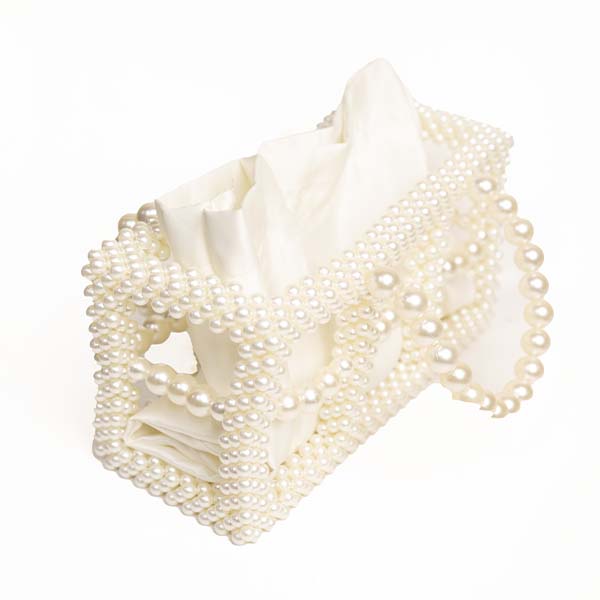 Turn heads at your next event with the White Beaded Formal Evening Bag, exquisitely handcrafted by Miss Swan and available at Baobabmart.