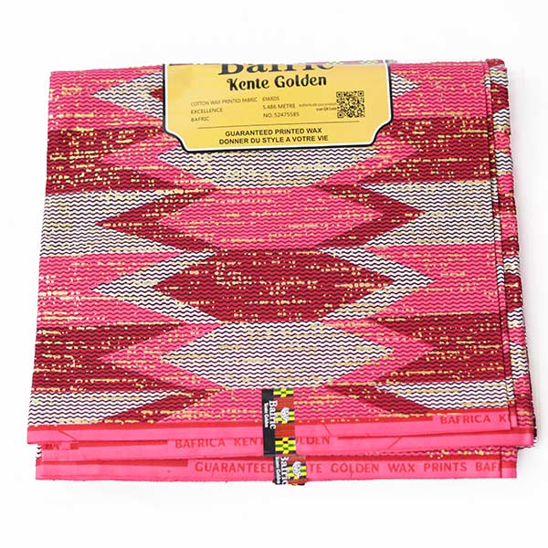 You’re excited about the Pink and Red Kente Gold Wax Fabric for Sale bringing rich, stylish looks that impress your friends every time!