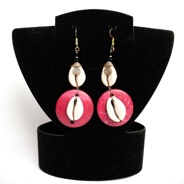 Add a touch of color and cultural flair to your accessories with these Pink Ox Horn Earrings with Cowries.