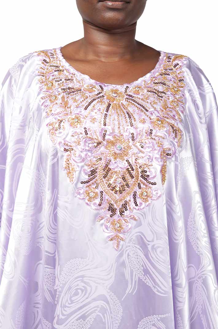 Overview Purple Boubou with Gold Embroidery and Matching Scarf