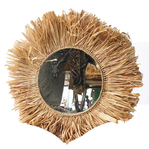 Add a touch of natural charm to your space with our Raffia Round Wall Mirror, available at Baobabmart.
