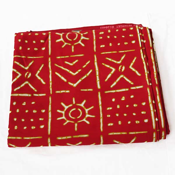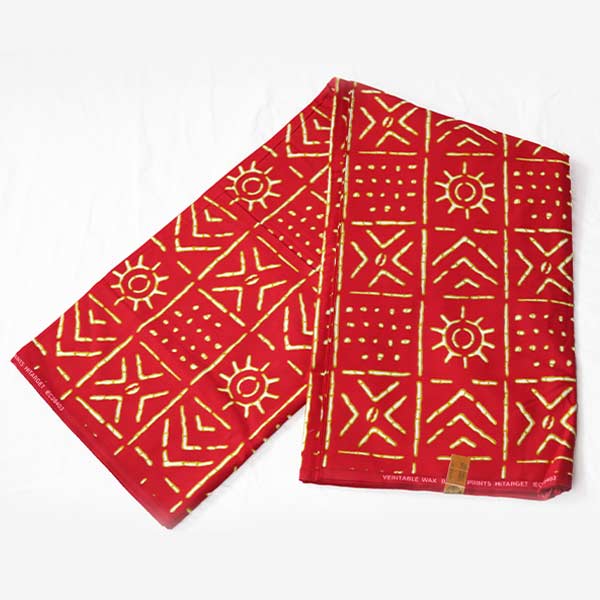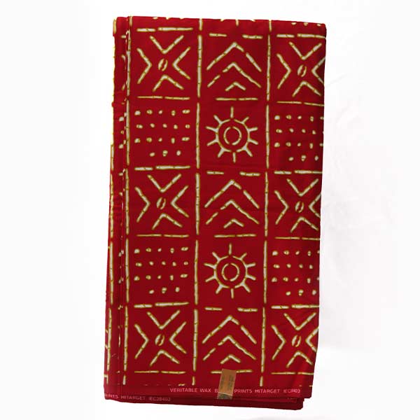 - A premium African textile with a bold red and white design.
