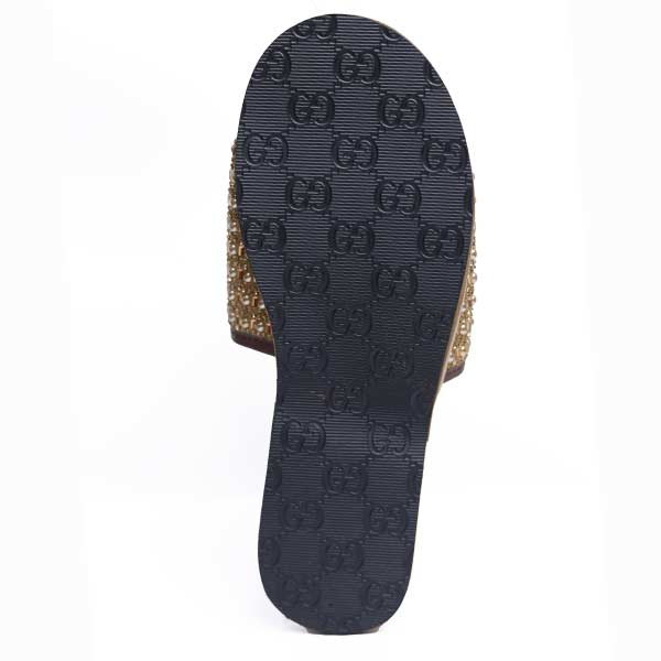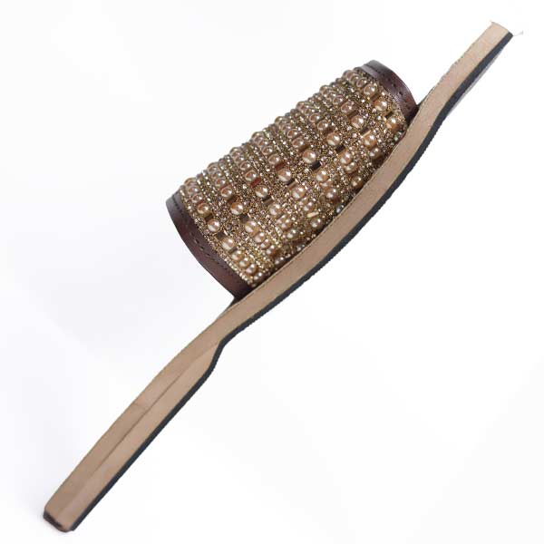 • Handcrafted sandals with intricate gold bead embellishments.