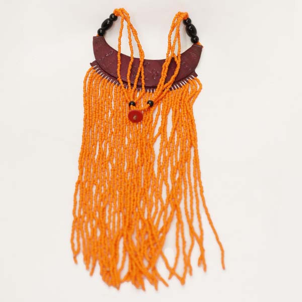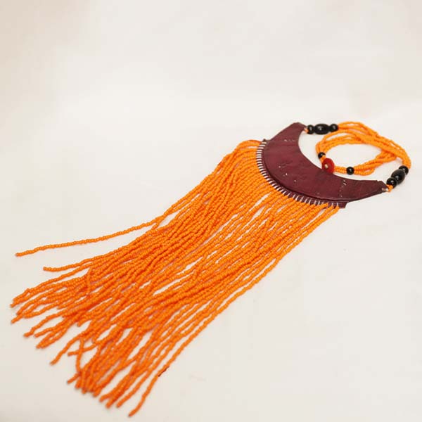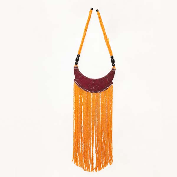 The necklace is handcrafted with genuine leather and traditional beads, offering a unique and high-quality accessory.