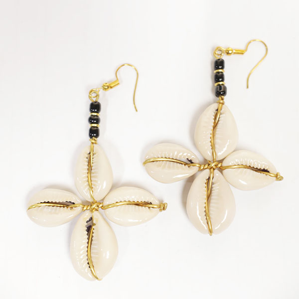 These earrings are made using authentic cowrie shells, handcrafted into a unique star shape for a cultural and stylish design.