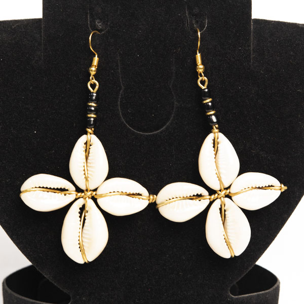Skillfully handcrafted, they feature a unique star shape adorned with authentic cowrie shells, adding a blend of traditional African charm and modern elegance.